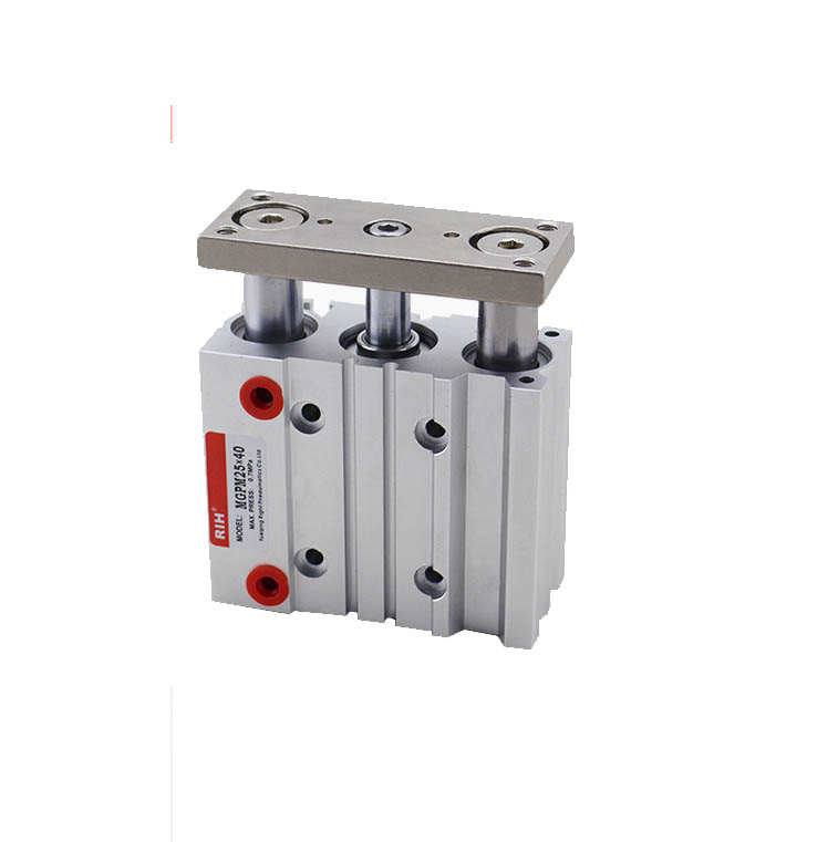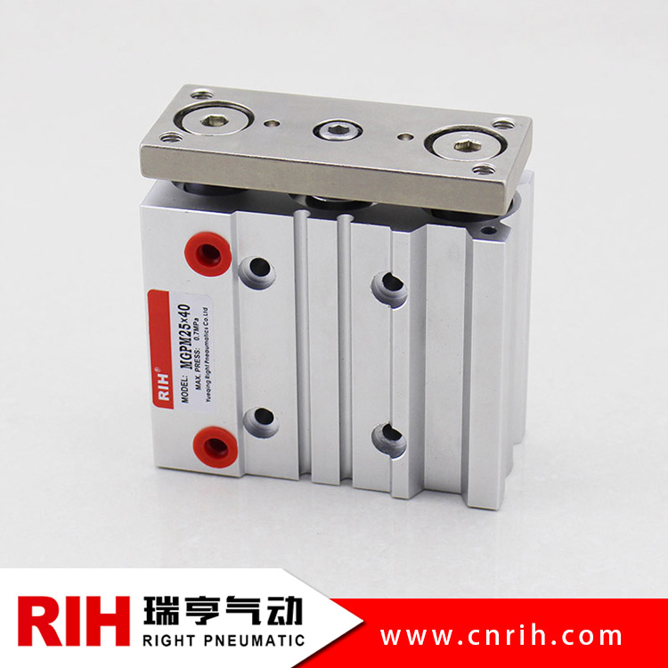 MGPM三軸氣缸主要特點體積小、輕巧、耐橫向負載能力強,不回轉精度高,導向桿的軸承可以選擇滑動軸承安裝或球軸承。
