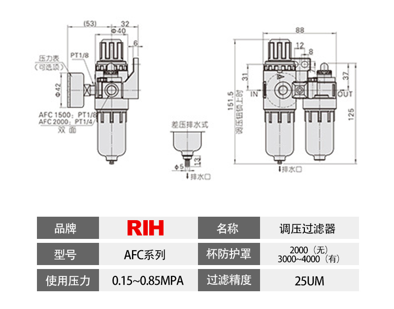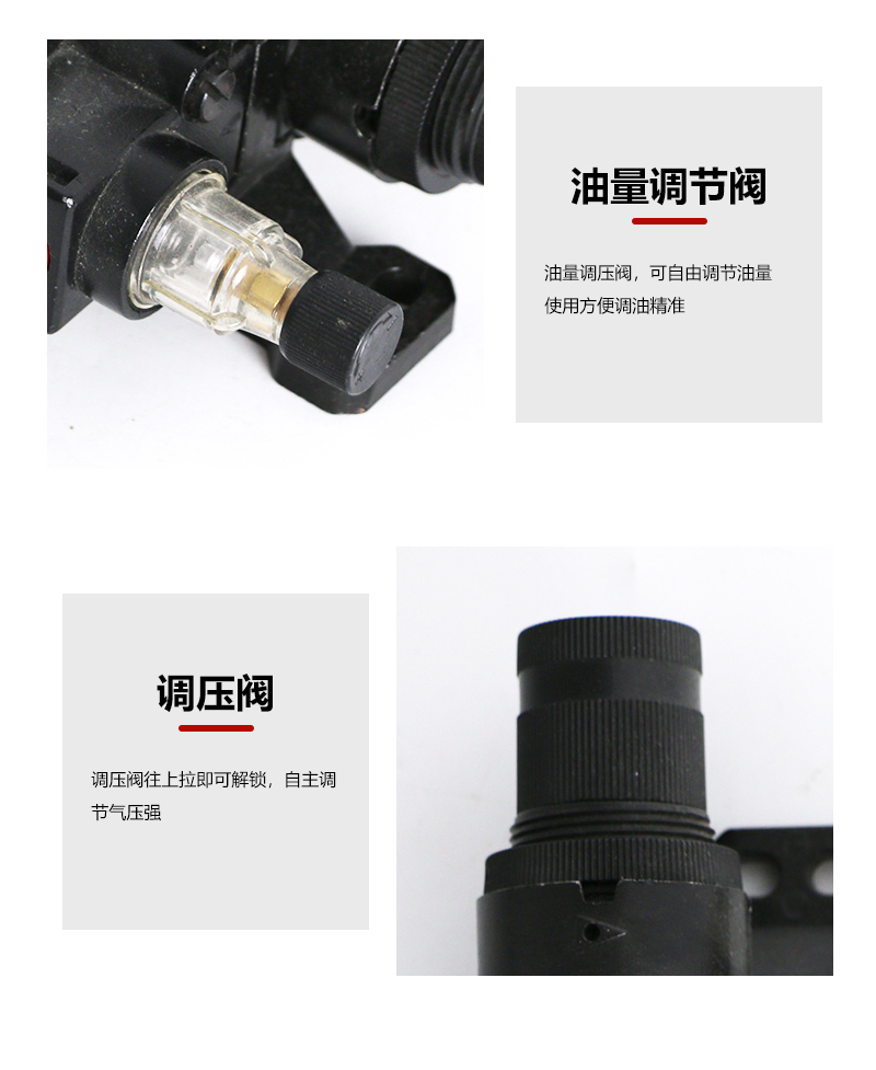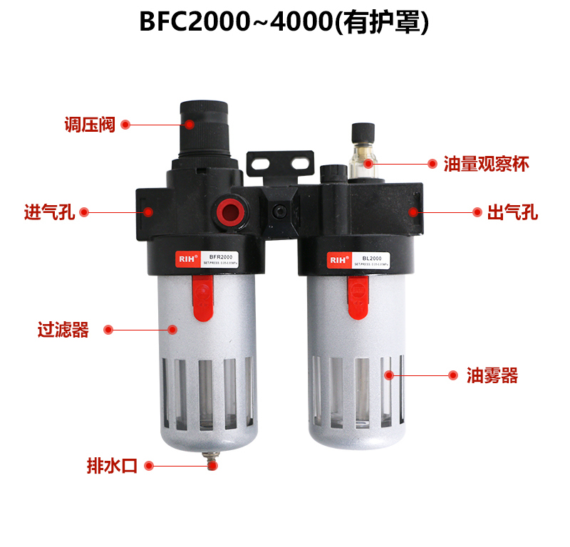 亞德客型二聯件AFC2000由調壓過濾器和油霧器構成,他的功能和三聯件是一樣的,公司生產的二聯件AFC2000能夠完全代替亞德客二聯件,結構輕巧緊湊,安裝使用方便;壓力損失小,分水效率高;透明是視察罩,可直接觀察滴油量大小;瑞亨提供最全面的氣源處理選型、銷售服務一體式,服務于自動化氣動行業配套與解決方案是我們的宗旨。