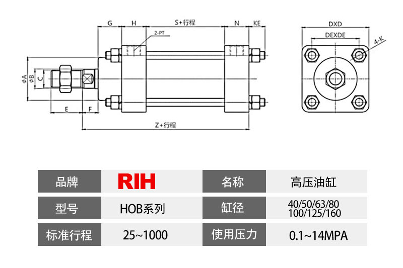 HOB重型拉桿油缸,屬于雙作用油缸,前后缸蓋通過四根螺絲桿鏈接,拆裝維修方面,常用于磨具行業(yè)、包裝機械行業(yè)等。標準HOB輕型拉桿油缸,使用壓力14MPa,試驗壓力21MPa,由于壓力屬于中高壓,油缸各個配件強度要求足夠。
