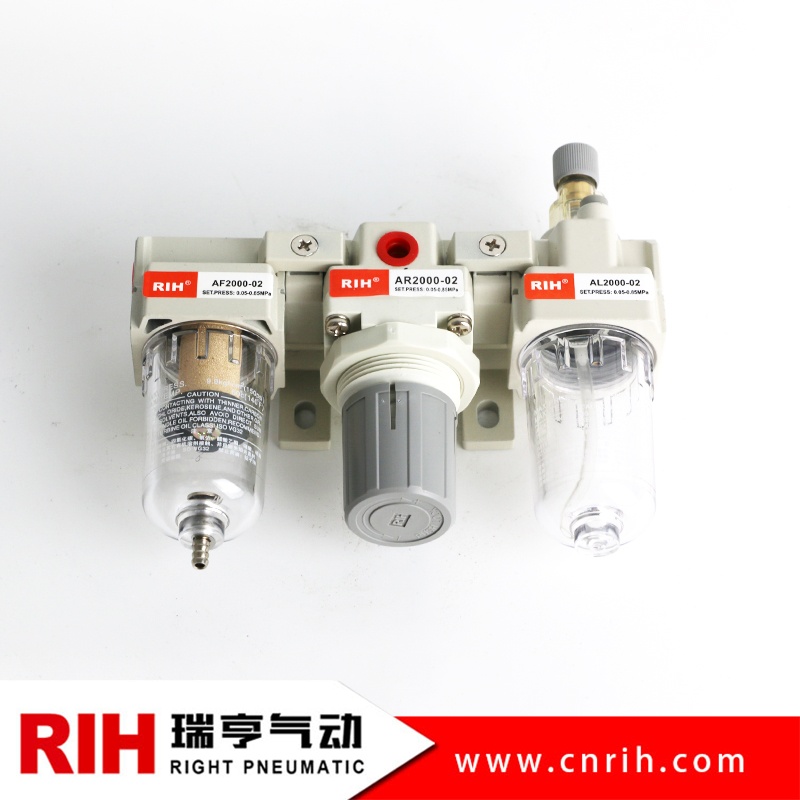 SMC型氣動三聯(lián)件AC2000-02,由氣源過濾器,調(diào)壓閥,油霧器組成,結(jié)構(gòu)輕巧,壓力損失小,分水效率高;透明視察罩,可直接觀察滴油量大小;所生產(chǎn)的產(chǎn)品能夠完全代替SMC三聯(lián)件,提供最全面的SMC氣動三聯(lián)件價格選型,服務(wù)于自動化氣動行業(yè)配套與解決方案是我們的宗旨。